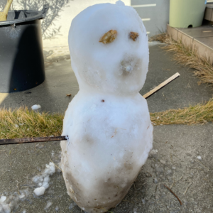 年越しそばを食べに行って、雪が降りしきる中大喜びで子どもと夫は庭で雪合戦をして遊んでいました(笑)