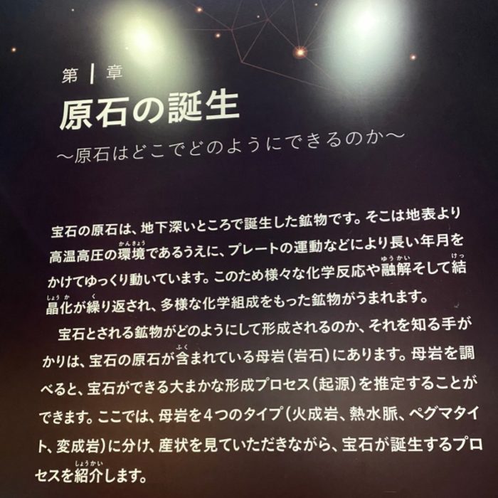 どうですか?原石だけでこの迫力とボリューム!!!ここから、原石から宝石になっていく過程が展示されていますので、是非現地に足を運んで見てほしいです。