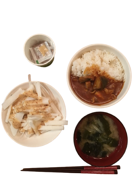 - 豆腐とわかめの自家製味噌で作ったお味噌汁