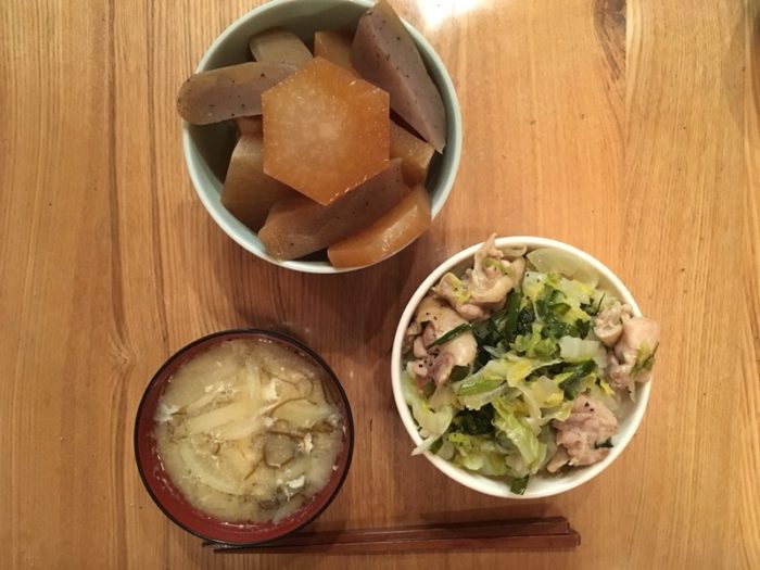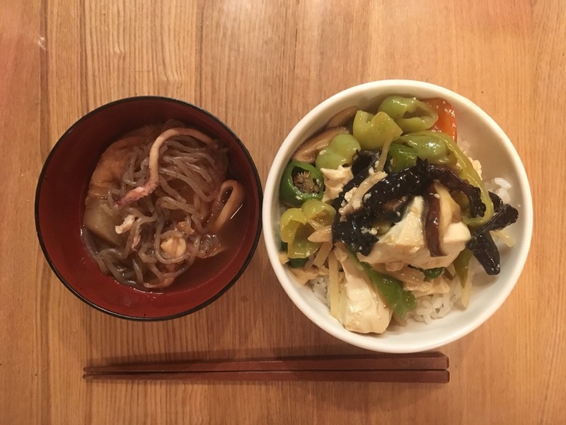 - 鶏肉と白菜とニラと玉ねぎ丼